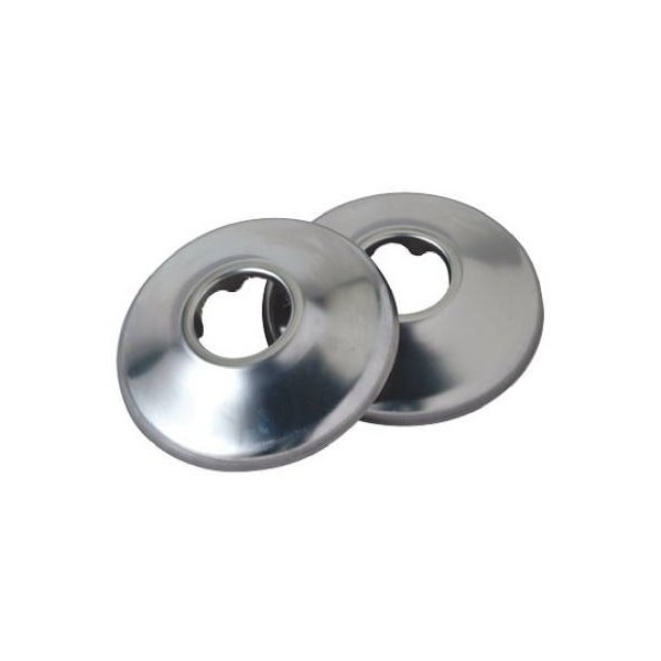 Master Plumber, Chrome Finish Flange, 2 Pack, Shallow Pipe Cover, For 38 Iron Pipe Or 58 OD Copper Tube, Carded