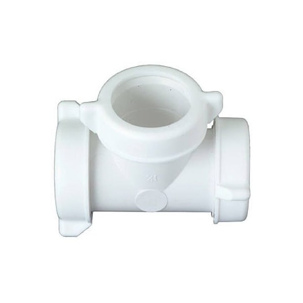 Master Plumber, White, Plastic, LavatoryKitchen Drain Tee, 114 Or 112 OD Tube Slip Joint, 3 Ends, Includes Nuts Washers, Carded