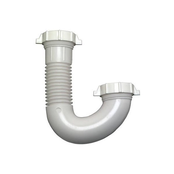 Master Plumber, White, Plastic, Flexible LavatoryKitchen Drain J Bend, 114 Or 112 OD Tube Slip Joint, Includes Nuts Washers, Carded