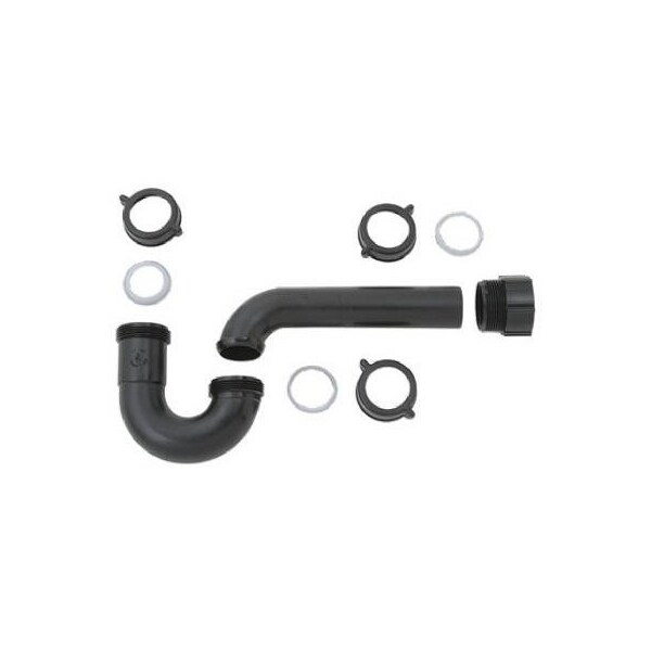 Master Plumber, Black, Plastic, Kitchen Wall Drain P Trap, With Solvent Weld Pipe Adaptor, 112 Tube Slip Joint, Includes Nuts Washers, Bagged