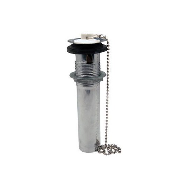 Master Plumber, 114 OD Tube x 5, Chrome Plated Brass, Lavatory Drain Plug, 1 Piece PO Plug, Includes Metal Beaded Chain Rubber Stopper With Ring, Carded