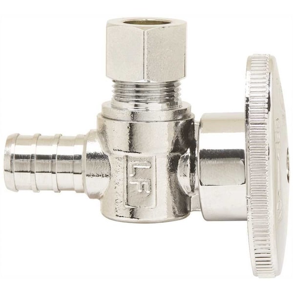 Plumbshop 1/2 in. Nominal Crimp Barb PEX x 3/8 in. O.D. Compression 1/4 Turn Angle Stop controls water flow to household plumbing fixtures - faucets, toilets, dishwashers, icemakers, washing machines, etc. The straight valve is most often used where the water pipe enters the room from the floor. With an easy-grip ergonomic 1/4-turn handle, you are able to stop the flow of water leading to the plumbing fixture, allowing for maintenance and repair without shutting off the water to the entire home.Forged brass body1/2 in. nom crimp barb x 3/8 in. O.D. compCompatible with PEX tubingFor use in potable water distribution systemsPositive 1/4 turn ball stop; easy on/off operationChrome plated for corrosion resistanceFor use with water connections in exposed locations onlyFor indoor useNo-lead certifiedIAPMO and CSA Listed to ASME A112.18.1/CSA B125.3 and ANSI 372