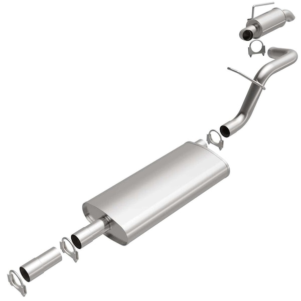 Aluminized Steel; With Mufflers; 2-1/2 Inch Pipe Diameter; Single Exhaust With Single Exit; Rear Exit; Without Tips; With All Gaskets/ Clamps and Mounting Hardware To Complete Installation
