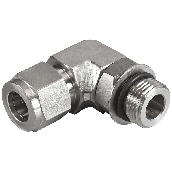 Compression Fitting Elbow, Application Hydraulics, Fitting Side A Connection Type Compression, Fitting Side B Connection Type Male SAE, Fitting Material Stainless Steel, Fitting Side A Tube Outer Diameter 3/8 in, Material Grade 316, Maximum Operating Pressure 3326 psi, Maximum Operating Temperature 400 Degrees F, Overall Length 32 mm, Specific Fitting Shape 90 Degrees Elbow, Compatible Fitting Brands Parker A-LOK, Swagelok, Thread Size A 9/16-18, Thread Size B 9/16-18
