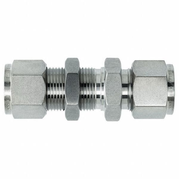 Compression Fitting Union, Application Hydraulics, Pneumatics, Fitting Side A Connection Type Compression, Fitting Side B Connection Type Compression, Fitting Material Stainless Steel, Fitting Side A Tube Outer Diameter 3/8 in, Fitting Side B Tube Outer Diameter 1/4 in, Material Grade 316, Maximum Operating Pressure 3326 psi, Maximum Operating Temperature 1,200 Degrees F, Overall Length 2 13/32 in, Specific Fitting Shape Bulkhead Straight, Fitting Side A Pipe Size Not Applicable