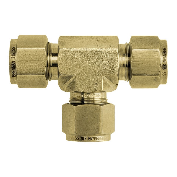 Compression Tee Fitting, Application Hydraulics, Pneumatics, Fitting Side A Connection Type Tube, Fitting Side B Connection Type Tube, Fitting Side C Connection Type Tube, Fitting Side D Connection Type Not Applicable, Finish/Coating None, Fitting Material Brass, Fitting Side A Tube Outer Diameter 5/16 in, Fitting Side B Tube Outer Diameter 5/16 in, Fitting Side C Tube Outer Diameter 5/16 in, Fitting Side D Tube Outer Diameter Not Applicable, Thread Size D Not Applicable