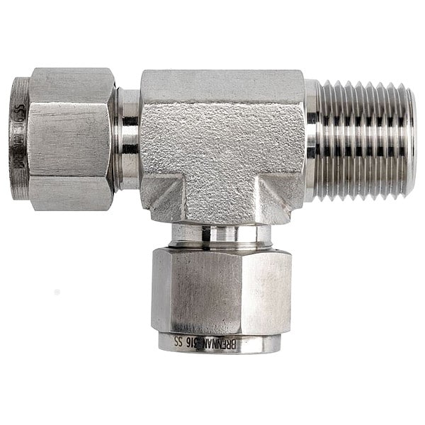 Compression Tee Fitting, Application Hydraulics, Pneumatics, Fitting Side A Connection Type Compression, Fitting Side B Connection Type MNPT, Fitting Side C Connection Type Compression, Finish/Coating Not Applicable, Fitting Material Stainless Steel, Fitting Side A Tube Outer Diameter 1/4 in, Fitting Side B Tube Outer Diameter 3/8 in, Fitting Side C Tube Outer Diameter 1/4 in, Thread Size B 3/8-18, System of Measurement Imperial/Metric, Compatible Fitting Brands Parker A-LOK, Swagelok