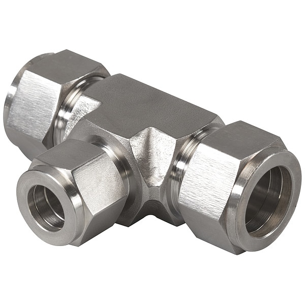 Compression Tee Fitting, Application Hydraulics, Tubing Systems, Fitting Side A Connection Type Compression, Fitting Side B Connection Type Compression, Fitting Side C Connection Type Compression, Fitting Material Stainless Steel, Fitting Side A Tube Outer Diameter 3/8 in, Fitting Side B Tube Outer Diameter 3/8 in, Fitting Side C Tube Outer Diameter 3/8 in, Thread Size C 9/16-20, Thread Size B 9/16-20, Thread Size A 9/16-18, System of Measurement Imperial