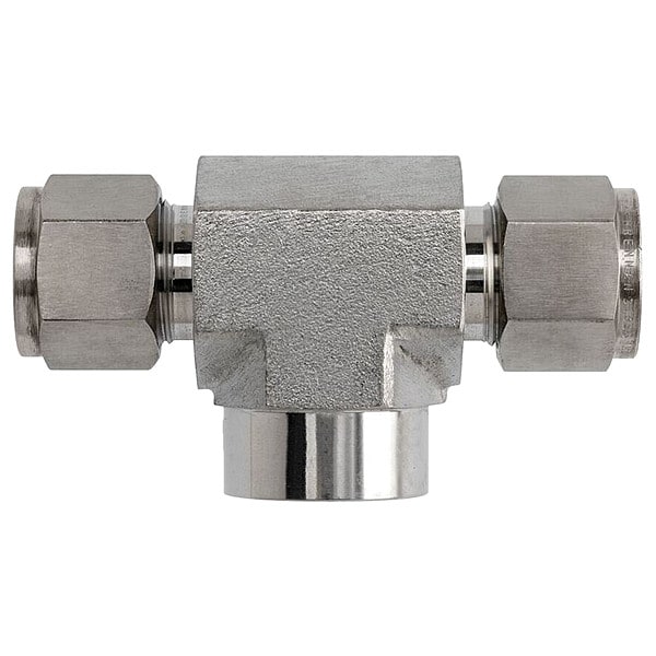 Compression Tee Fitting, Application Hydraulics, Pneumatics, Fitting Side A Connection Type Compression, Fitting Side B Connection Type Compression, Fitting Side C Connection Type FNPT, Finish/Coating Not Applicable, Fitting Material Stainless Steel, Fitting Side A Tube Outer Diameter 3/8 in, Fitting Side B Tube Outer Diameter 3/8 in, Fitting Side C Tube Outer Diameter 1/4 in, Thread Size C 1/4-18, System of Measurement Imperial/Metric, Compatible Fitting Brands Parker A-LOK, Swagelok