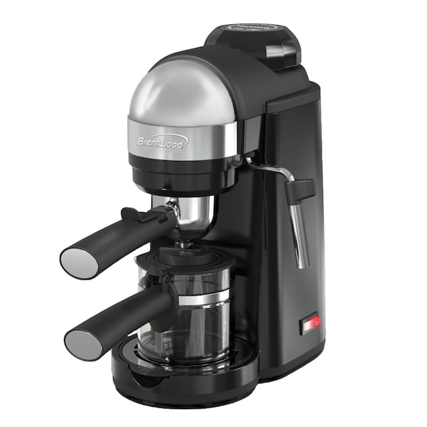 Use the powerful 800 watt Brentwood GA-135BK Espresso and Cappuccino Maker to brew up to 4 servings of rich and creamy espresso. The built-in steam wand produces silk like milk for cafe style cappuccinos and lattes. The tempered glass carafe has an easy pour spout and cool touch handle. Save money with the reusable stainless steel filter. Use the included 2in1 scoop and tamp tool to make a perfect puck. Removable drip tray, group head, filter and steam wand cover make clean up a snap. Convenient power indicator light signals the unit is on.
