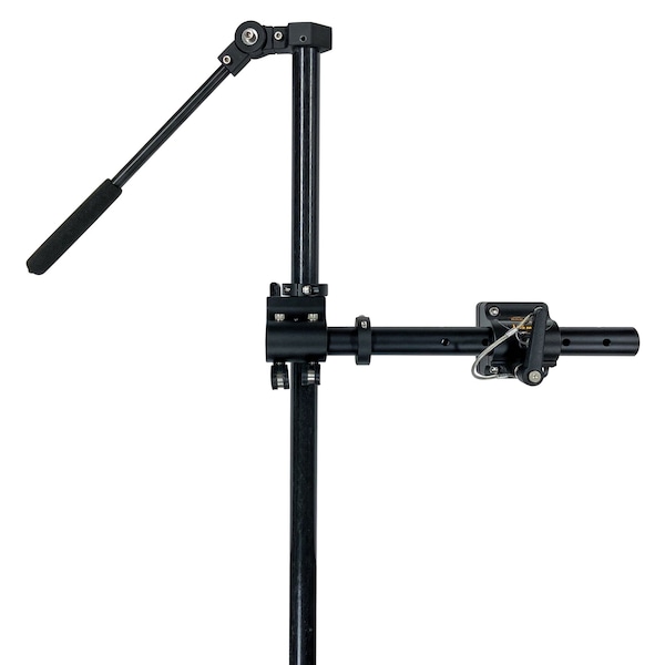 This assembly has a base that mounts to either a 7/8 or 1 inch rail. The carbon fiber vertical pole is 60 inches and ALCS, Aluminum Cross Shaft is 14 inches. The components are anodized aluminum with stainless steel ratcheting handles and stainless steel hardware. The 12 handle can pivot 180 Degrees for easy storage and can be used at any angle. The handle has a comfortable foam grip. The 12 inch piece of 1.5 inch heat shrink secures the transducer cable to the shaft without damaging it.