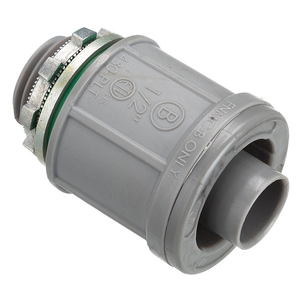Conduit Fitting Connector, 1 in, Threaded, Nylon, Gray