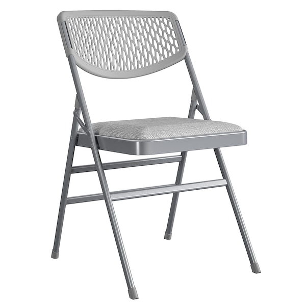 Folding Chair, Resin Mesh Back, Padded Fabric Seat, Grey Color, PK4