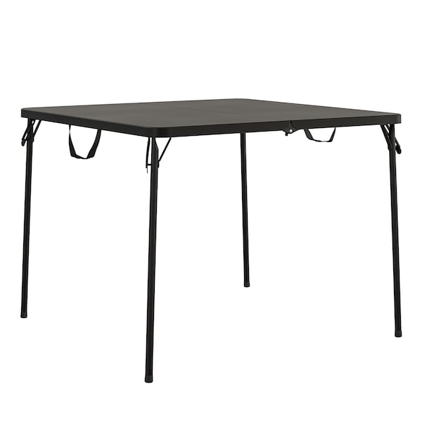 Cosco's 38" oversize square folding table folds in half and has a resin top and can be used indoors or outdoors. Table measures 38.5" x 38.5" for 25% more surface space than traditional square tables. Wheel chair accessible at 29.5" tall. Non marring footcaps protect floor surfaces. Table is lightweight and easy to set up, take down and store. The black color is attractive in all settings. Packs 1 per carton per color