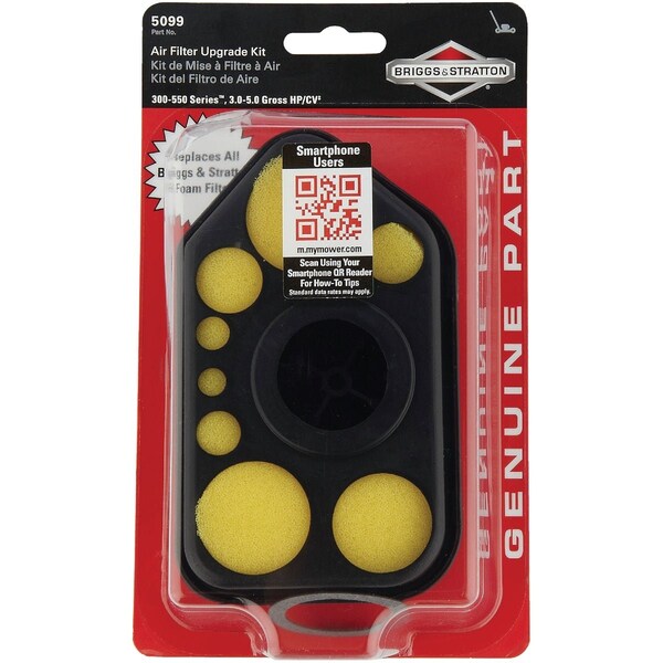 Foam air filter with pre-cleaner for Briggs & Stratton engines. Fits engines: Classic Sprint Quattro Q 45 and 300-550 Series engines. 3 to 5 gross HP. .