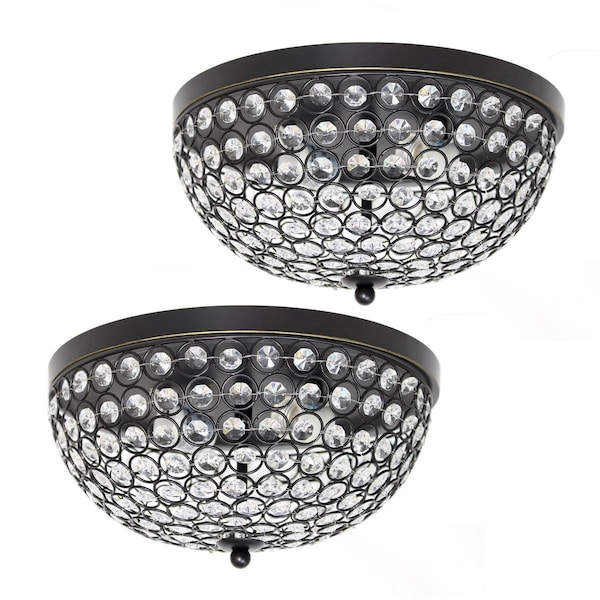 Crystal Glam 2 Light Ceiling Flush Mount Restoration Bronze, 2PK