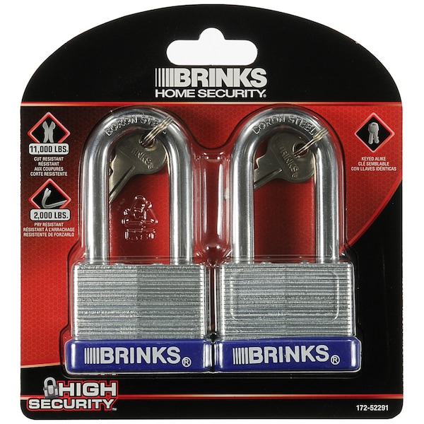 Brink’s Laminated Steel Padlock features a 50mm body and a 2" Boron steel shackle for superior cut resistance. The padlock is designed with a 4 brass pin cylinder to increase pick and pry resistance and a dual lever locking mechanism for added security. The padlock is perfect to use indoors and outdoors and is ideal to secure storage units, chains, trailers, gates, and utility boxes.