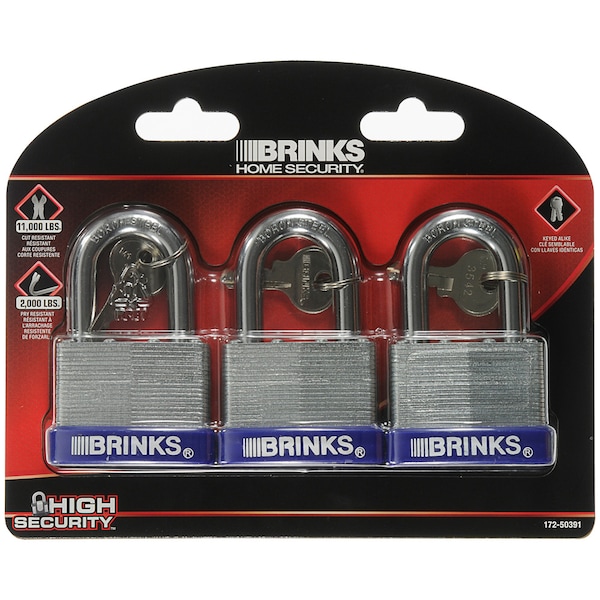 Brink’s Laminated Steel Padlock features a 50mm body and Boron steel shackle for superior cut resistance. The padlock is designed with a four brass pin cylinder to increase pick and pry resistance and dual lever locking mechanism for added security. A form-fitted plastic bumper completes the look, offering protection from marring. The padlock is perfect for indoors and outdoors and is ideal to secure storage units, chains, trailers, gates, and utility boxes.