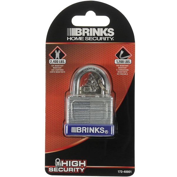 Brink’s Laminated Steel Padlock features a 40mm body and a chrome plated, hardened steel shackle for increased cut resistance. The padlock is designed with a four brass pin cylinder to increase pick and pry resistance. A form-fitted plastic bumper completes the look, offering protection from marring. The padlock is perfect for indoors and outdoors and is ideal to secure storage units, trailers, gates, and utility boxes.
