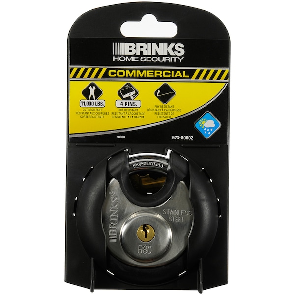 80mm discus lock with a full rubber jacket. The jacket prevents scratching of surfaces and valuables while lock is in use. This padlock is perfect for use on storages units, gates, large locker facilities, or other places the extra security of a shielded discus padlock is required. As a global leader in security-related products and services, the Brink's name is synonymous with top quality merchandise to keep you and your valuable safe.