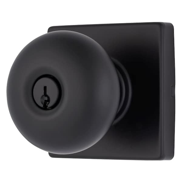 Mendocino Series Keyed Entry Contemporary Ball Knob Square Rose Matte Black Finish
