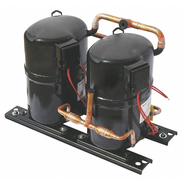 A/C Compressor, BtuH 110,000, Voltage 460, 3 Phase, Line Connection Suction I.D. 1 1/8 in, Line Connection Discharge I.D. 3/4 in, Refrigerant Type R-22, Nominal HP 10, 50/60 Hz, 15.2 Amps, Evaporating Temp @ ARI Standards 45 Degrees F, Condensing Temp @ ARI Standards 130 Degrees F, Return Gas Temp @ ARI Standards 65 Degrees F, Ambient Temp @ ARI Standards 95 Degrees F, Liquid Temp @ ARI Standards 115 Degrees F, Base Mount Length 22 1/2 in, Base Mount Width 7 1/2 in, Length 12 23/64 in