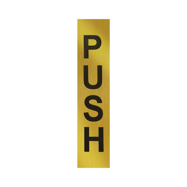 Introducing the 4-1/2in Rectangular Push Indicator,These Push Pull Indicators are a must-have for any home or office. With 5/8in 16 mm high letters etched into the plate, you can easily indicate whether to push or pull a door. Available in a sleek oil rubbed bronze,Brushed Stainless,Polished Stainless,Polished Brass,Satin Brass,Matte Black finish, this indicator will add a touch of elegance to any space.Measuring 4-1/2in 114 mm high x 1in 25 mm wide, this indicator is the perfect size for easy visibility. The pressure sensitive tape on the back allows for quick and easy mounting, so you can start using it right away.