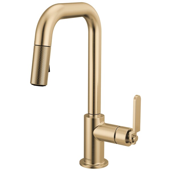 Litze Pull-Down Prep Faucet with Square Spout, Industrial Handle Luxe Gold