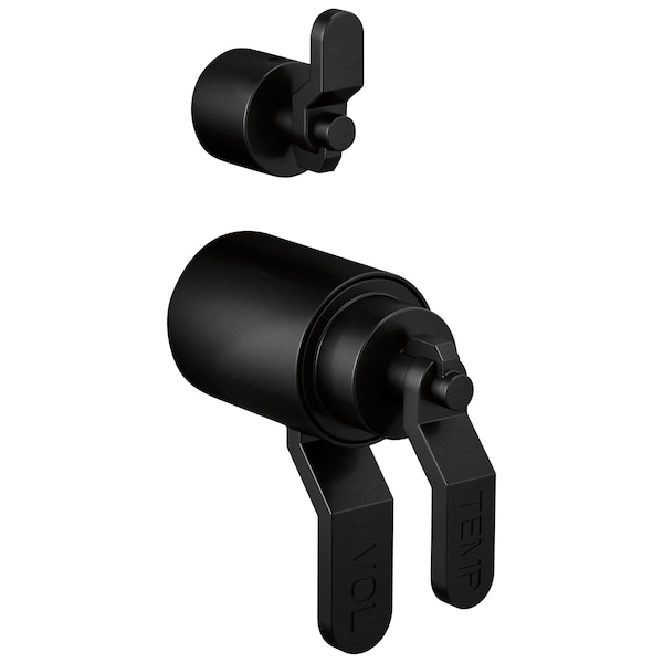 Litze Tempassure Thermostatic Valve With Diverter Trim Handle Kit, Industrial Lever Matte Black