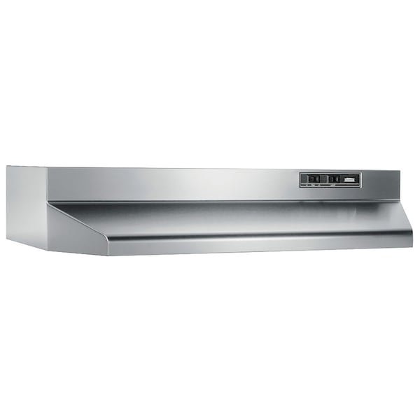 This 40000 Series 30-inch range hood features a sleek design that is perfect for any modern or traditional kitchen. Designed for under-cabinet installation, this range hood installs with a 3.25-in. x 10-in. ducted opening with vertical or horizontal ducting; or 7-in. round vertical ducting or as non-ducted with air recirculation. The powerful 160 CFM fan quickly removes smoke and odors from your kitchen. Convenient incandescent lighting brightly illuminates the cooktop below. Our dishwasher safe aluminum grease filter is removable and reusable to make cleaning your F40000 Series range hood easy to clean