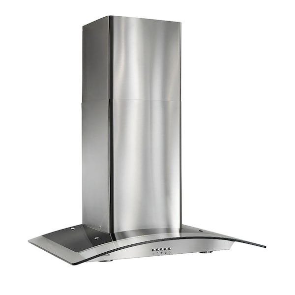 450 CFM 35-7/16-in. Arched Glass Wall Mount Chimney Hood with Halogen Lighting