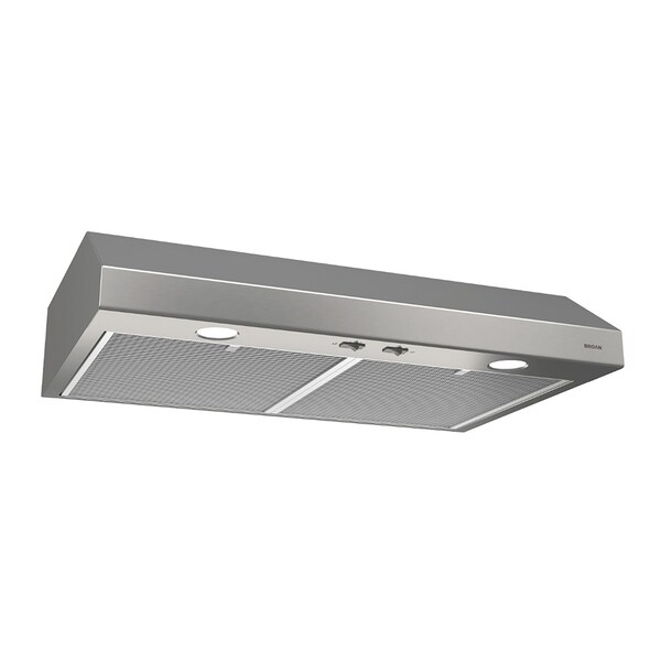 This under-cabinet convertible range hood features a clean, contemporary shape to complement nearly any kitchen design. Equipped with the exclusive Broan Captur system, which combines advanced blower design with new filter technology, this 300 Max Blower CFM-rated hood provides 97.4-percent removal of smoke and odor to protect your home and family from airborne pollutants caused from cooking. The quiet-running Glacier is also designed with smooth flow technology, which streamlines the path of air for improved efficiency and noise reduction. Easy-flip rocker switches control the 2 fan speeds and halogen lighting system. Using the included EZ1 system, Glacier can easily be installed by one person in up to half the time of a standard install