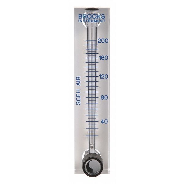 Mechanical Flowmeter, Product Type Machined Flow Meter, Flowmeter Type Variable Area, Accuracy 3 Percent, Connection Size 1/8 in, Connection Type FNPT, Compatible Flow Material Air, Media Temperature - Maximum 150 Degrees F, Media Temperature - Minimum 40 Degrees F, Viscosity - Maximum 79.8 SUS, Housing Material Acrylic, O-Ring Material Viton, Seal Material Viton, Shaft Material -, Wetted Material Acrylic, Stainless Steel, Viton