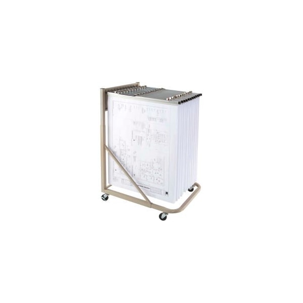 print clamps the rolling blueprint mobile stand bundle is perfect for your blueprint files that require mobility, accessibility and ease of use. Heavy gauge steel telescoping channel construction adjusts in height and depth. Rolling blueprint stand includes a dozen chrome plated pivot hangers that swing wide to allow easy access to drawings and rack features four 3 ball bearing swivel casters with a locking feature for the rear casters. Includes a dozen 42 aluminum print clamps. Maximum capacity is 1200 sheets. Finished in a durable sand beige powder coat finish. Easy assembly.