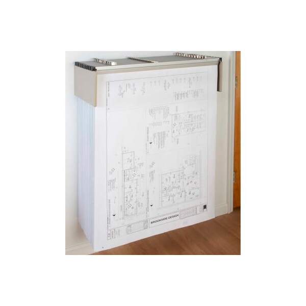 provides compact drop-lift storage for 12 clamps and includes a dozen 30" aluminum print clamps. Clamps lift out and drop in for easy access. extends 15" from the wall - ideal where space is limited. Maximum capacity 1200 sheets. finished in a durable sand beige powder coat finish.