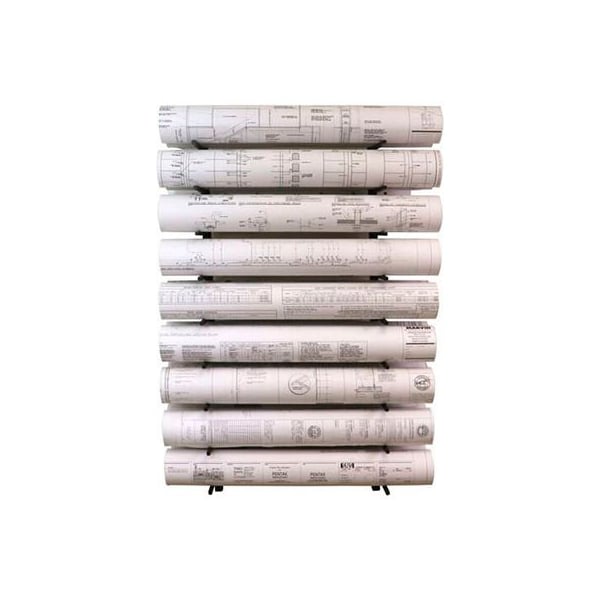 Vis-i-rack vrw85-high cap. Blueprint storage roll file wall rack - 8 openingstake advantage of your vertical wall space to organize your blueprints or other large rolled materials. Heavy duty steel frames with welded posts supports up to 320 lbs on our wall mounted racks. Wall mounted racks are 44" tall, 21" wide, 11" deep and attach to wall mounting plates. Bin "posts" are welded at an incline and extend 9" off the frame. Wall brackets with 16" stud spaced mounting holes extend the frame 1-1/4" off the wall to allow space for chair rail is included. Finished in a durable powder coated textured black paint. compact wall mount design saves valuable floor space to store oversized rolled documents heavy duty welded steel frame supports up to 320 lbs of rolled storage material includes wall brackets that extend rack 1-1/4" off the wall to allow for baseboard or chair rail includes four 6" tall bins and four 4" tall bins (openings) overall rack is 44" tall, 21" wide and 11" deep mounting plates are 30" wide x 3-1/2" tall mounting plate holes are pre-drilled to accommodate wall studs 8", 16" or 24" apart steel construction with durable powder coat textured black finish easy assembly
