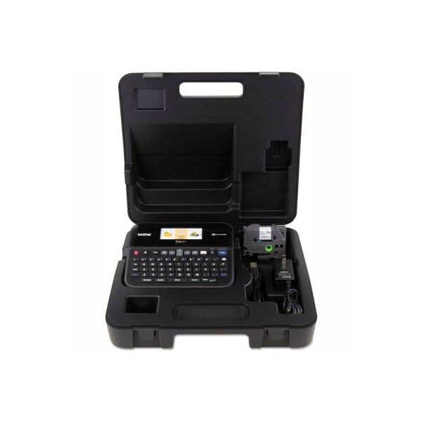 Brother p-touch pc-connectable label maker with color display and carry case versatile label maker helps you easily create high-resolution labels up to 24mm wide by connecting to a pc or mac and using p-touch editor software, or by using its expanded, easy-type qwerty keyboard. Detects and displays color of installed tape on backlit color graphic display. Super-fast label output and automatic tape cutterideal for business use. Print up to seven lines of text on a label, or print large, easy-read text. Use fonts and graphics from your computer or choose from installed library of fonts, frames, symbols, bar codes, and more. Uses durable, laminated tze label tape, with split back for easy application. Includes 1" (24mm) tze starter tape, ac adapter and usb cable. With color display and carry case. Machine width: 8"; machine depth: 7 5/8"; machine height: 3 3/8"; power source(s): 6 aa batteries (sold separately), ac adapter (included) this product arrives to most customers in 2-3 business days.