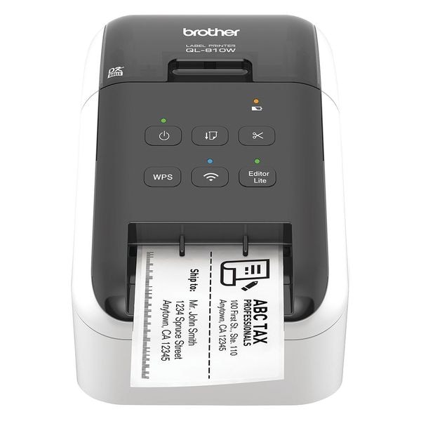 Desktop Printer, Desktop Barcode Printer Type, 2.3 in Max. Print Width, 300 dpi, 600 dpi Printer Resolution, 1.84 in/sec Print Speed, Cutter Dispensing Style, Wired, Wireless (wifi) Wire Communication, Printer Series Brother QL, For Core Dia. 1 in, 5 in Overall Height, 5 23/32 in Overall Width, 100 to 240V AC Voltage
