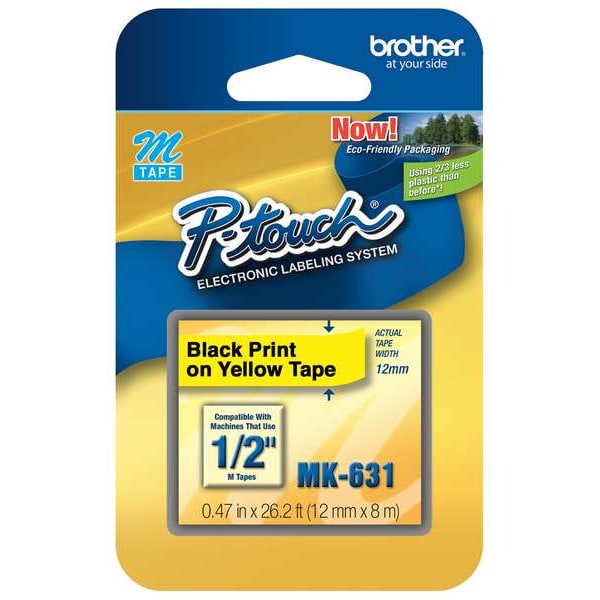 Continuous Label Roll Cartridge, Compatible Mfr Part Number PT-100, PT-110, PT-45M, PT-55BM, PT-55S, PT-65, PT-65SB, PT-65SCCP, PT-65SL, PT-65VP, PT-70, PT-70BBVP, PT-70BM, PT-70BMH, PT-70HK, PT-70HOL, PT-70HOT, PT-70SP, PT-70SR, PT-80, PT-80SCCP, PT-85, PT-90, PT-M95, Label Color Yellow, Label Width 1/2 in