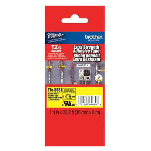 Continuous Label Roll Cartridge, Compatible Grainger Part Number 13C588, 274A79, 460K16, 52DY61, 52DY62, Compatible Mfr Part Number PT-3600, PT-530, PT-550, PT-9200DX, PT-9200PC, PT-9400, PT-9500PC, PT-9600, PT-9700PC, PT-9800PCN, PT-D800W, PT-E800W, PT-P900, PT-P900W, PT-P950NW, Label Color Yellow, Label Finish Gloss, Label Material PET, Label Width 1 1/2 in, Printer Series Compatibility PT-3600, PT-530, PT-550, PT-9200DX/PC, PT-9400, PT-9500PC, PT-9600, PT-9700PC, PT-9800PCN