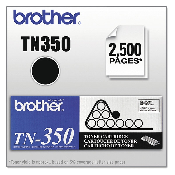 Market Indicator Cartridge No. TN350, Ink/Toner Color Black, Printer Brand Brother, Printer Series DCP, HL, intelliFax, MFC, Printer Model DCP-7020, HL-2040, HL-2070N, intelliFax-2820, intelliFax-2910, intelliFax-2920, MFC-7220, MFC-7225N, MFC-7420, MFC-7820N, Max. Page Yield 2,500, Remanufactured Cartridge Number 38MW26, Color Black, Cartridge Condition New, Toner Cartridge, For Use With Brother DCP-7020; HL-2040, 2070N; intelliFAX-2820, 2910, 2920; MFC-7220, 7225N, 7420, 7820N