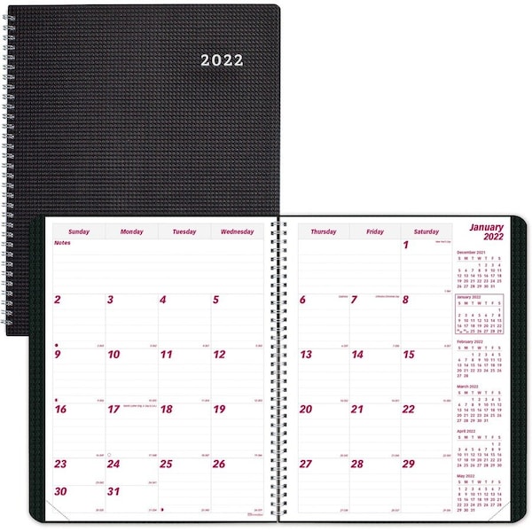 Monthly planner offers ample planning space and textured, heavy-duty poly cover to protect your important schedule and notes. Dated planning pages range 14 months from December to January. Two-page-per-month spreads include unruled daily blocks, Sunday-through-Saturday scheduling, moon phases, holidays, notes area, and past, current and four future months reference. The current reference month is boxed for easy identification. Nonrefillable planner also features a telephone/address section and twin-wire binding.