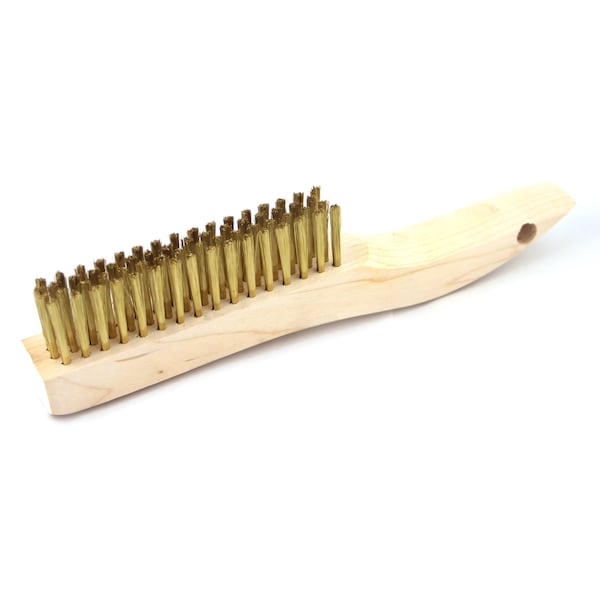 B46B Shoe Handle Scratch Brush, .006 Brass, 4X16, 1" Trim, 10.25" OAL