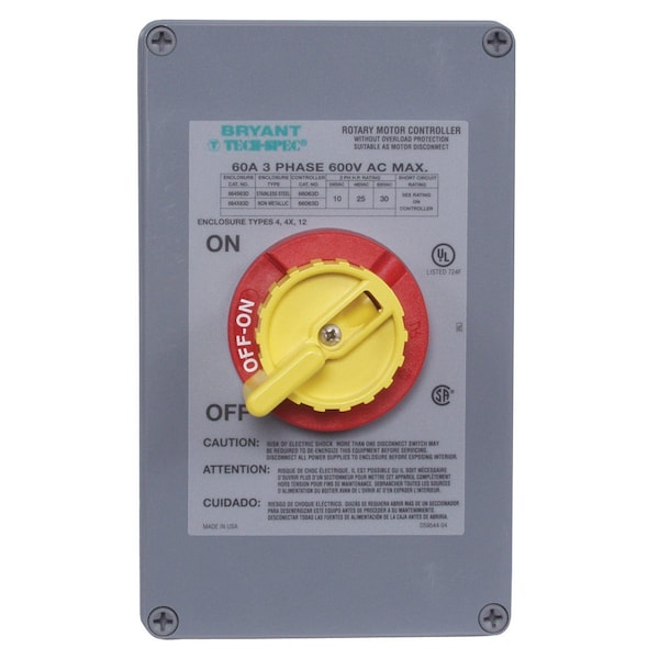 Enclosed Rotary Motor Controller, Three Pole, 60A 600VAC