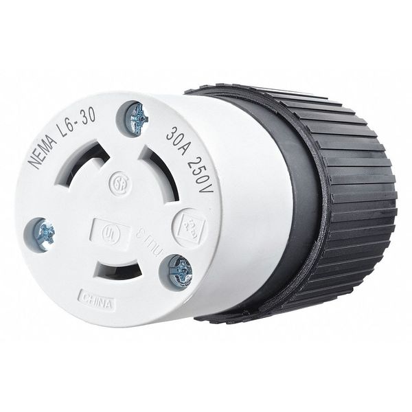 Locking Connector, Connection Orientation Straight, Current Rating 30 A, Housing Color Black, White, Housing Material Nylon, IP Rating IP20, NEMA Receptacle Configuration L6-30R, Number of Poles 2, Number of Wires 3, Phase Single, Polarized Yes, Resistance Properties Chemical Resistant, Impact Resistant, Shrouded No, Voltage Rating 250V AC, Wire Connection Type Screw Terminals, Wiring Style Standard, Cap Type No Cap or Cover, Grade Industrial, Grounding Grounded, Market Industrial
