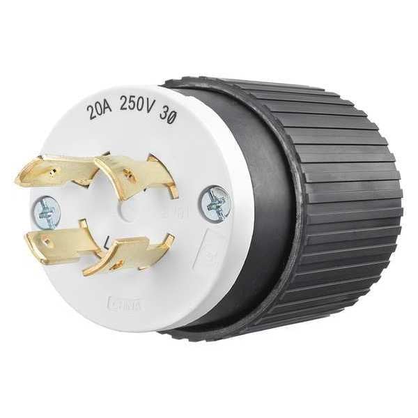Locking Plug, L15-20P, 20 A, 250V AC, Three Phase, 3 Pole, Screw Terminals, Black, White