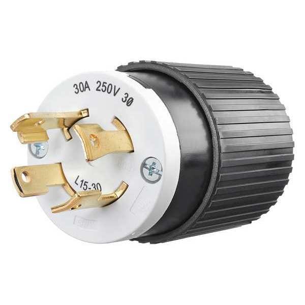 Locking Plug, Connection Orientation Straight, Current Rating 30 A, Housing Color Black, White, Housing Material Composite, NEMA Plug Configuration L15-30P, Number of Blades 4, Number of Poles 3, Phase Three, Polarized Yes, Resistance Properties Chemical Resistant, Impact Resistant, Voltage Rating 250V AC, Wire Connection Type Screw Terminals, Wiring Style Standard, Face Diameter 1.89 in, For Maximum Cable Diameter 1.15 in, For Minimum Cable Diameter 0.465 in, Grade Industrial