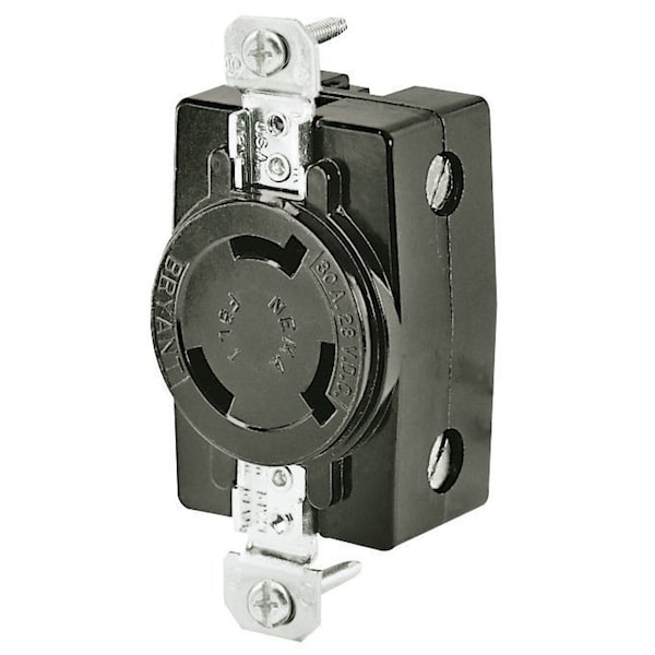 Locking Devices, Industrial, Flush Receptacle, 30A 28VDC, 2-Pole 3-Wire Grounding, FSL1R, Screw Terminal, Black