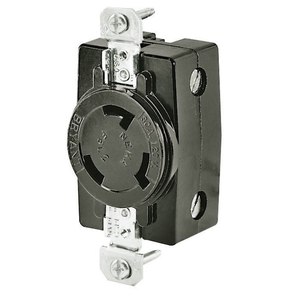 Locking Devices, Industrial, Flush Receptacle, 30A 120V AC 400Hz, 2-Pole 3-Wire Grounding, FSL2R, Screw Terminal, Black