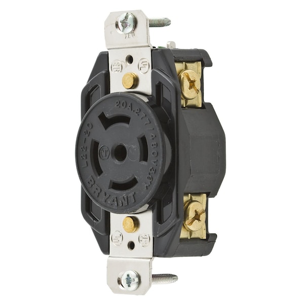 Locking Receptacle, L22-20R, 20 A, 277/480V AC, Three Phase, 4 Pole, Flush Mount, Screw Terminals